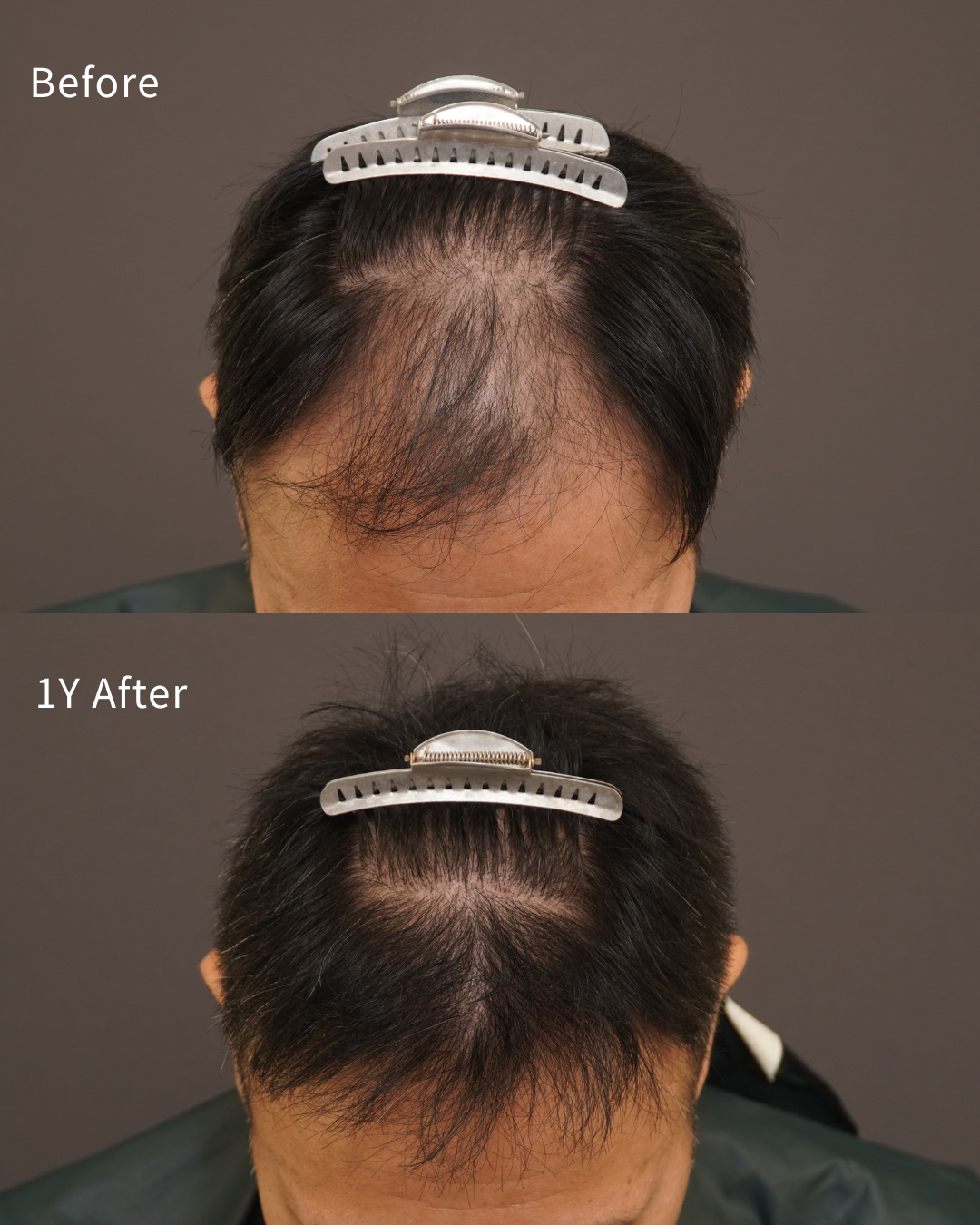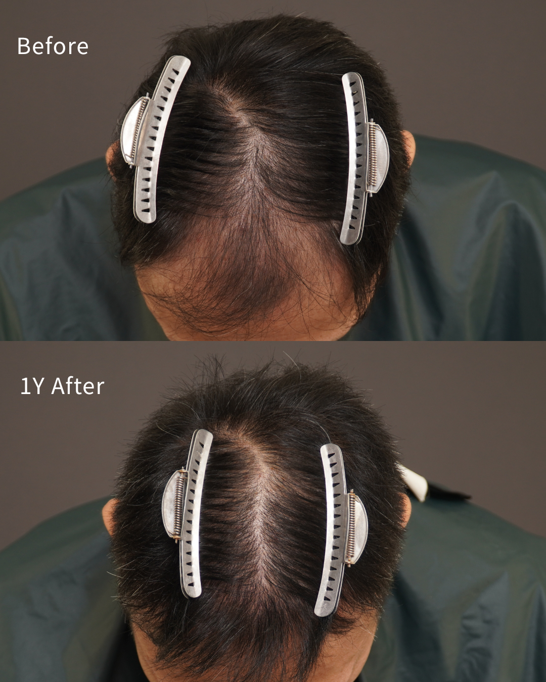 後頭部には太めの毛が多かったのですが、側頭部はやや密度が低く、細い毛が目立つ状態でした。