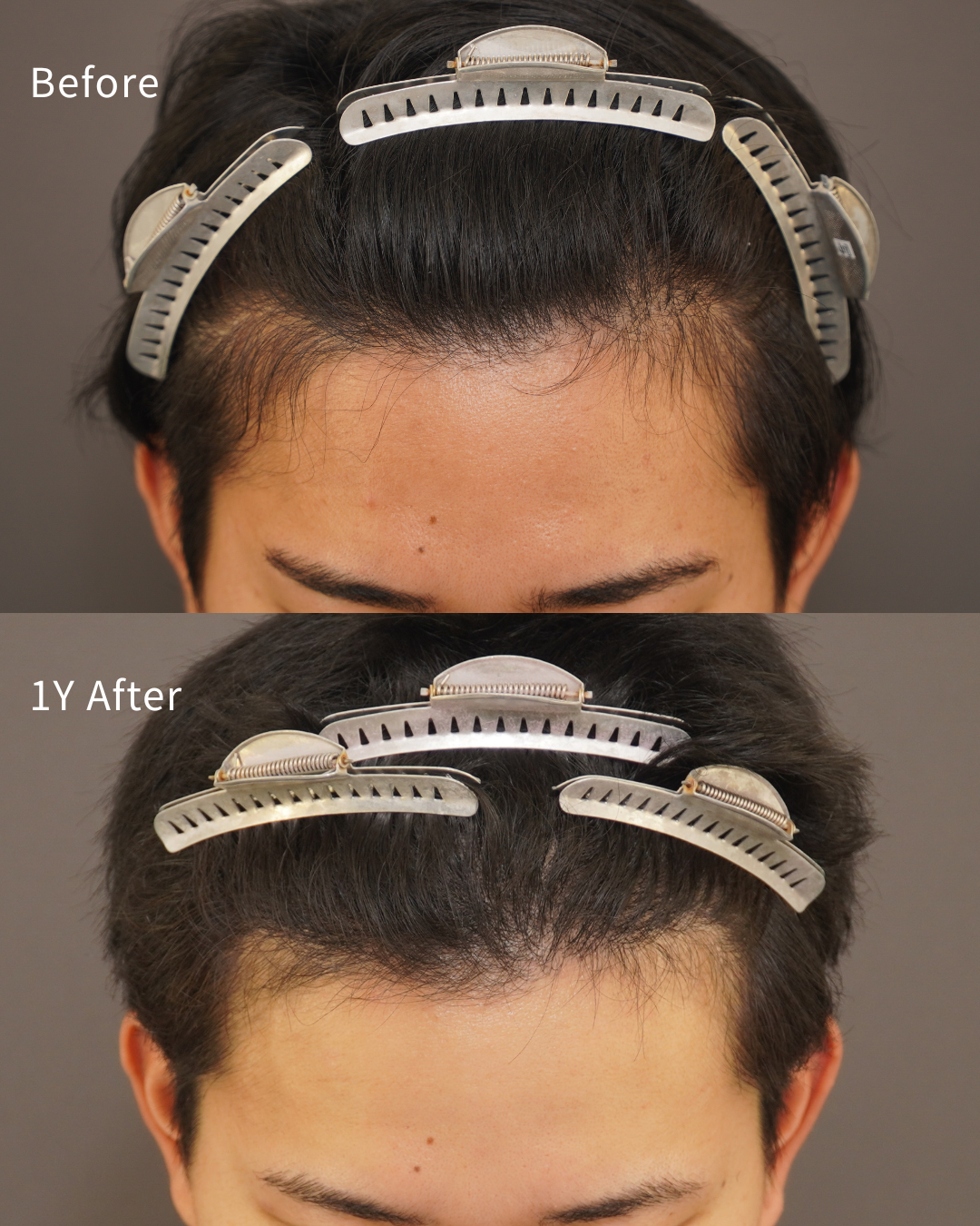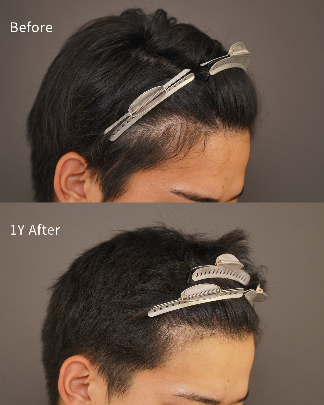 フィナステリド、ミノタブを内服し、全体的なボリュームアップとしては効果を感じていたものの、特に気になっていたM字部分では効果が乏しいとのことでした。