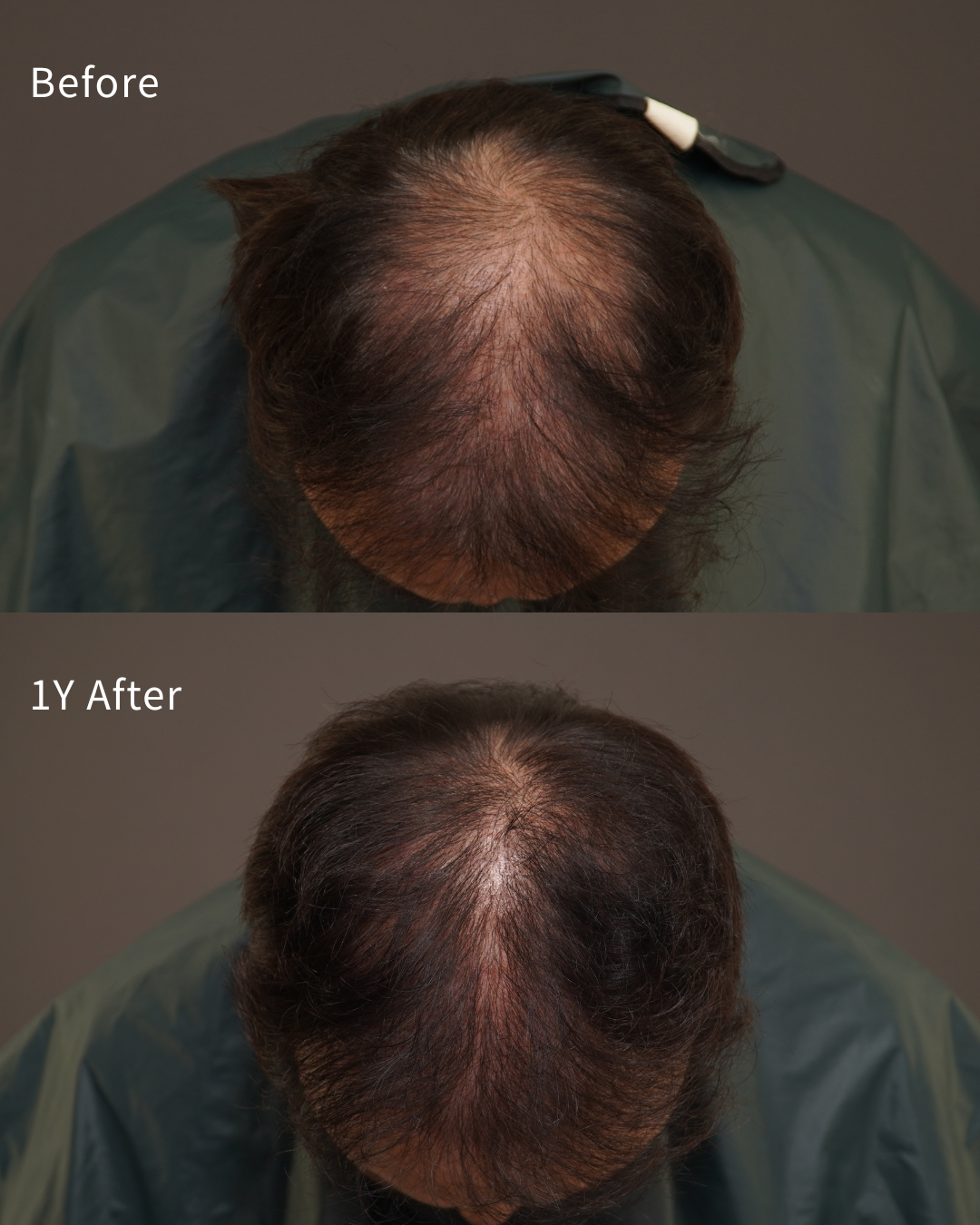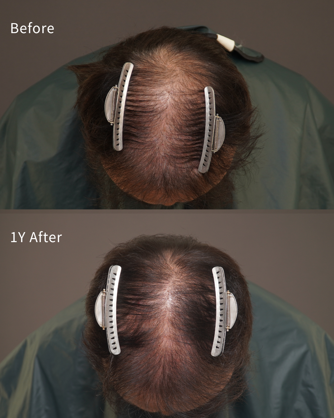 今回は、「最近、後方から見られた時の視線が気になる」とのことで、相対的に透け感の強い頭頂部の密度アップをご希望でした。