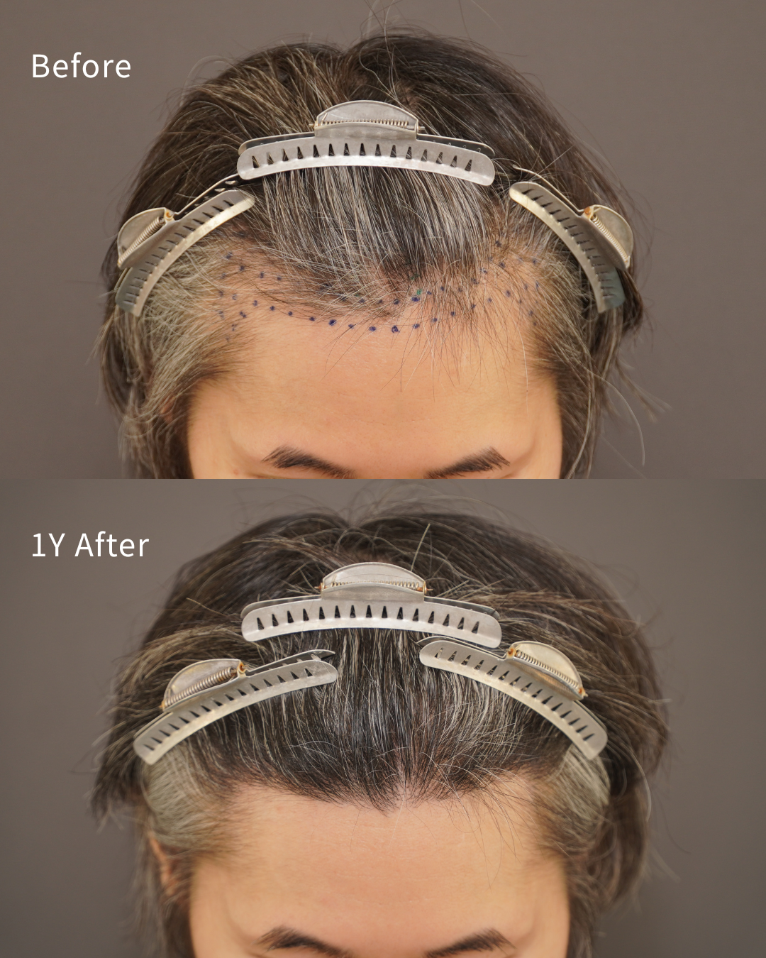 強いて言えば、中央やや左寄りの部分は瘢痕の影響によるためかやや細い毛が見られますが、透け感は軽度で気になるレベルではないとのことでした。