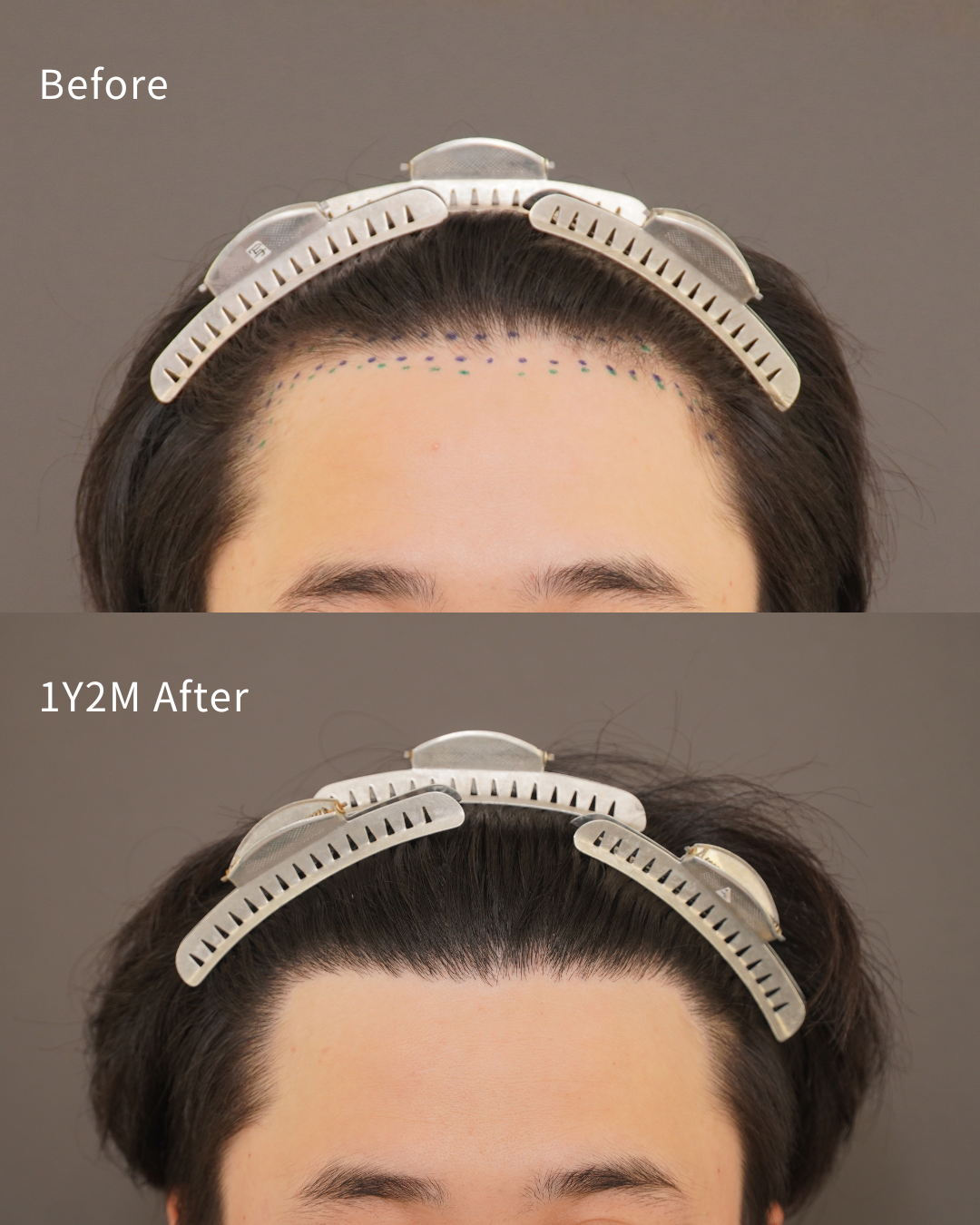 もともと額はそれ程広くありませんでしたが、「生え際のラインも下げたい」という強いご希望がありました。