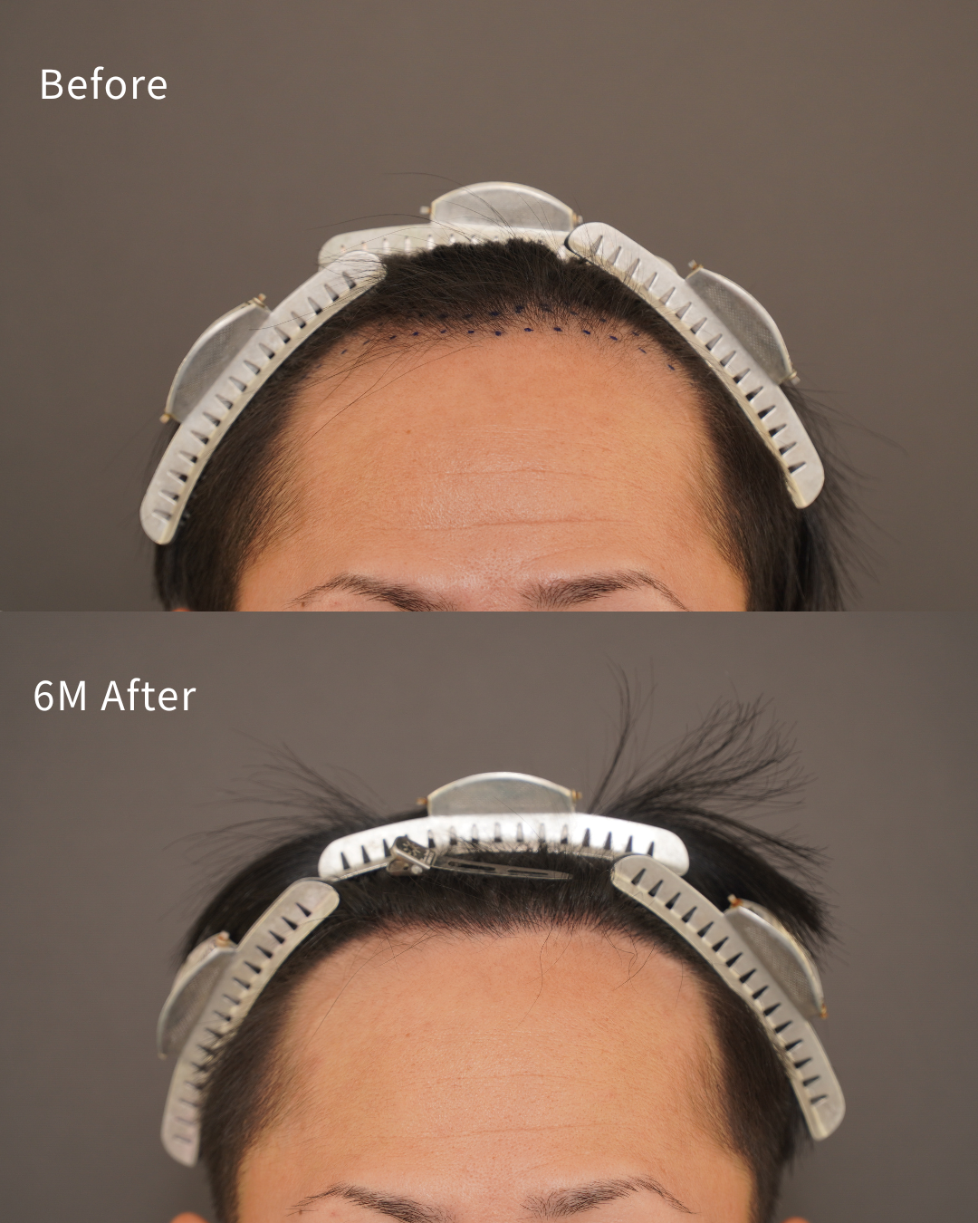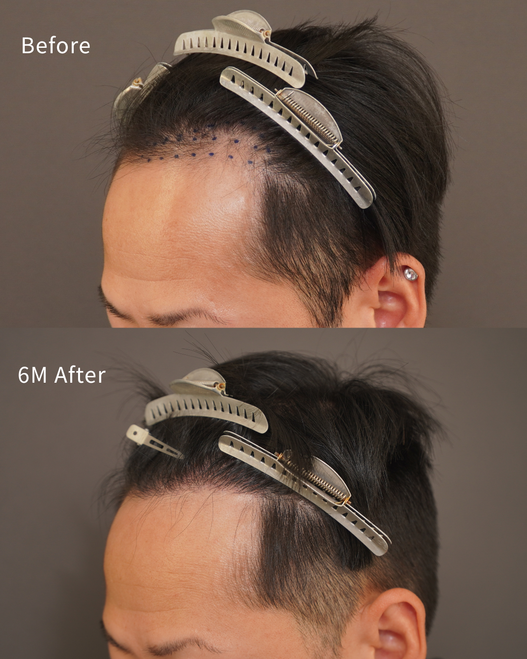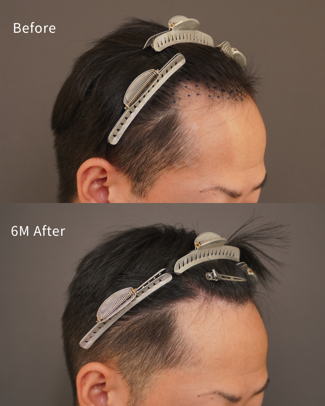 額はやや広めでしたが、「狭くしたい」というご希望はなく、M字が目立たなくなり、生え際中央が強化されれば十分とのことでした。