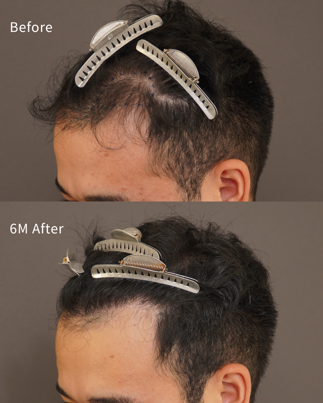 抜け毛は減少し、ある程度の効果実感はあったものの、十分な改善には至らず、植毛を希望されて来院されました。