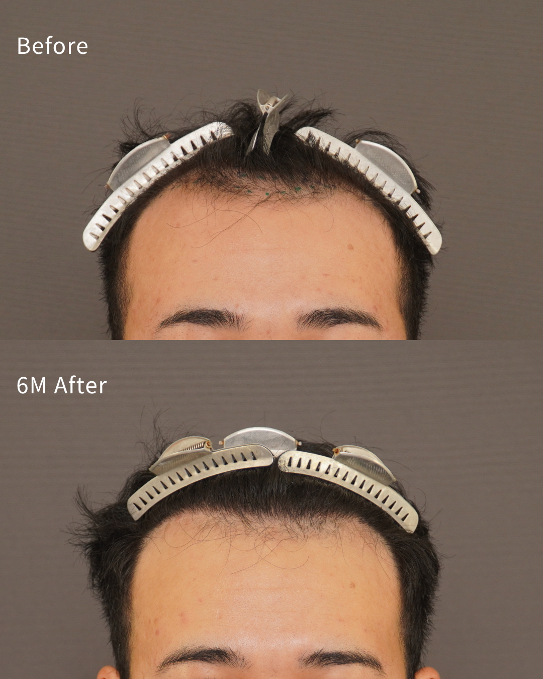 M字をしっかりと改善させることを軸に、生え際中央および前頭部の奥も含め、全体のバランスが整うよう計画しました。