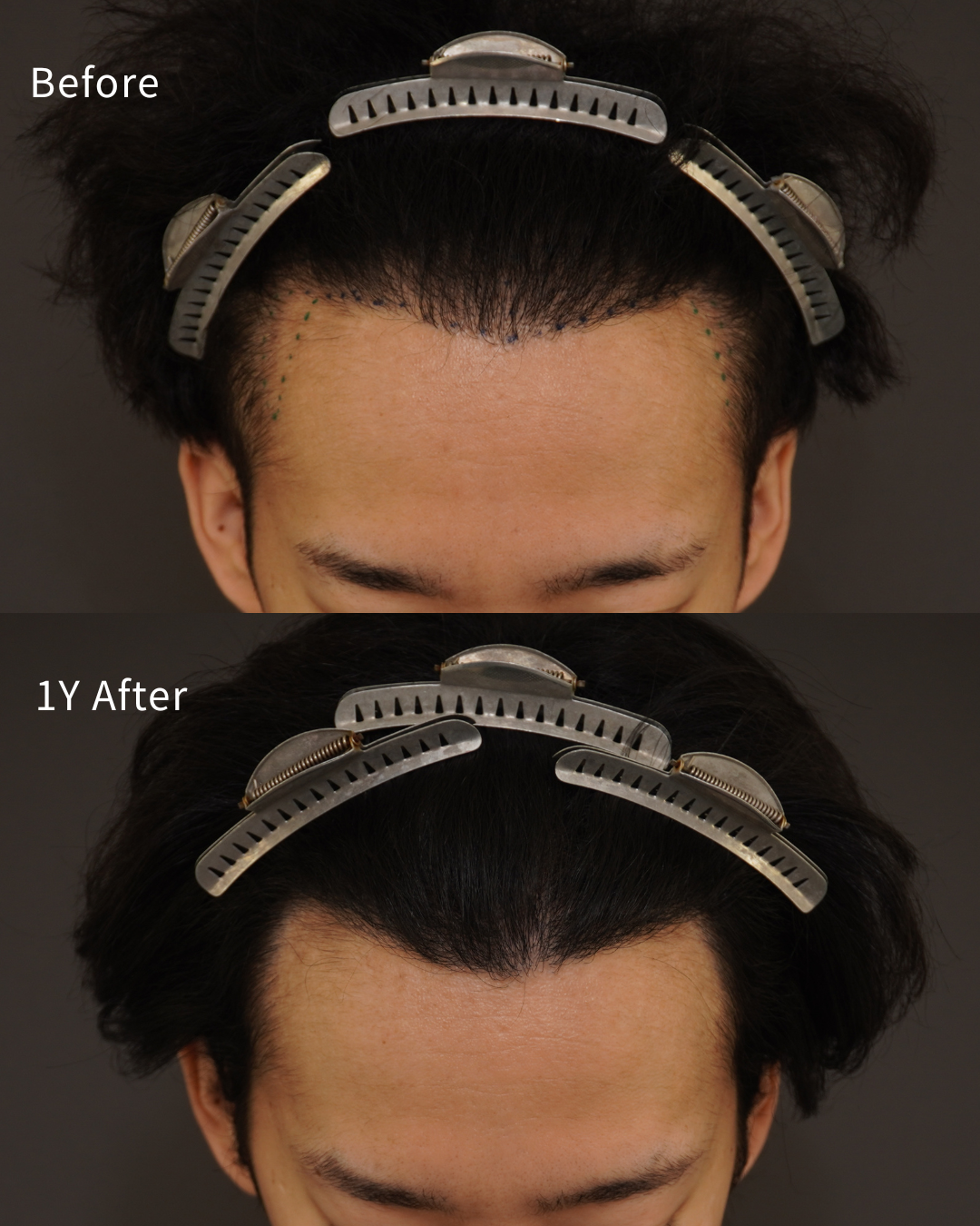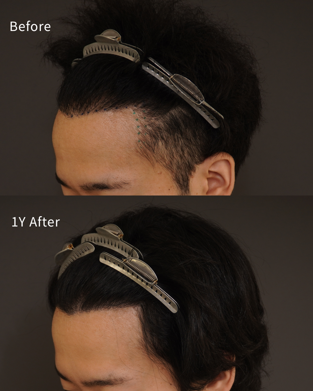 1年程前に、他院でM字、生え際に1500株の手術を受けられています。