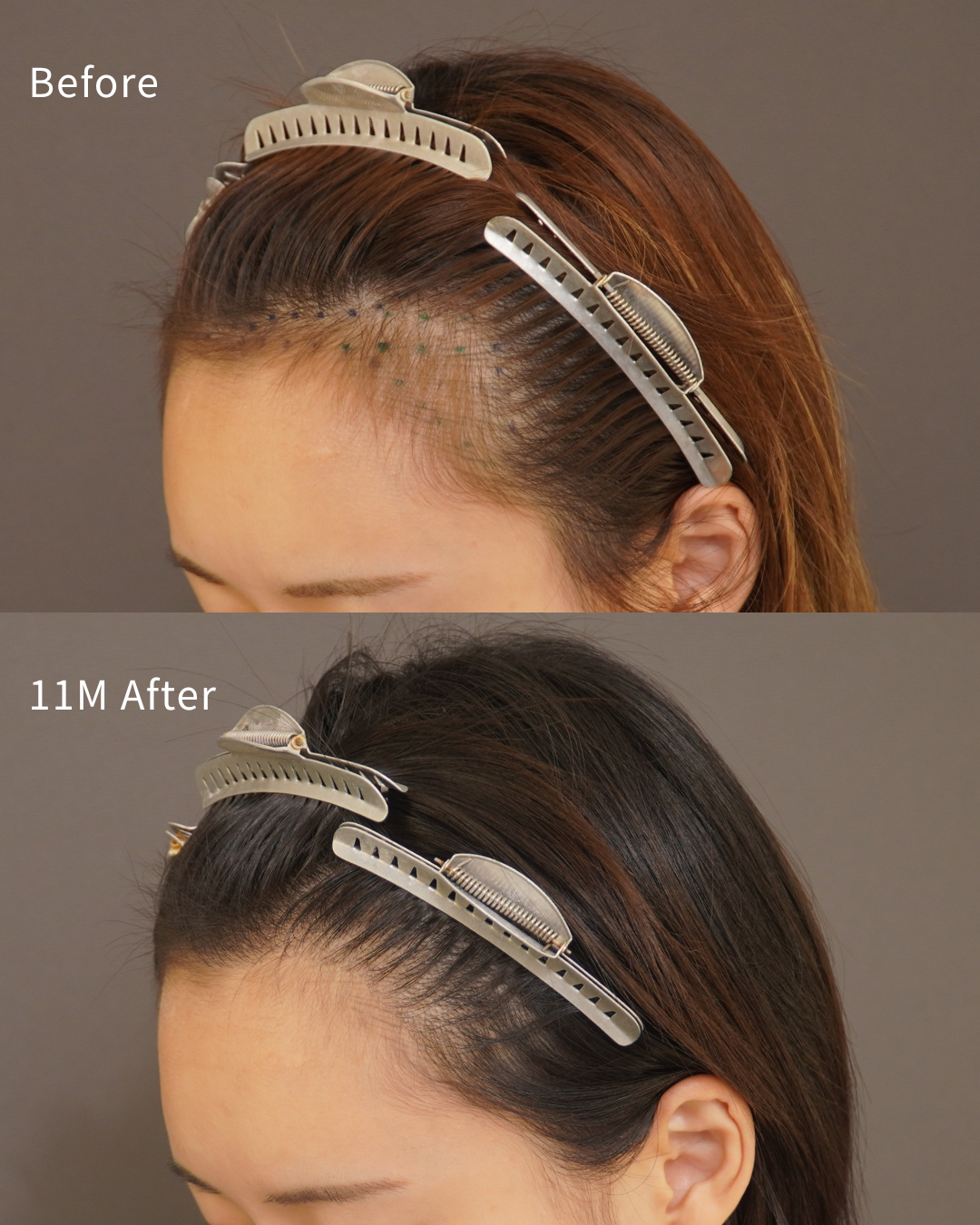 また、毛流れに特徴があり、毛がかなり寝ている傾向があったため、手術時にはその特徴に合わせて毛穴の角度を精密に調整しました。