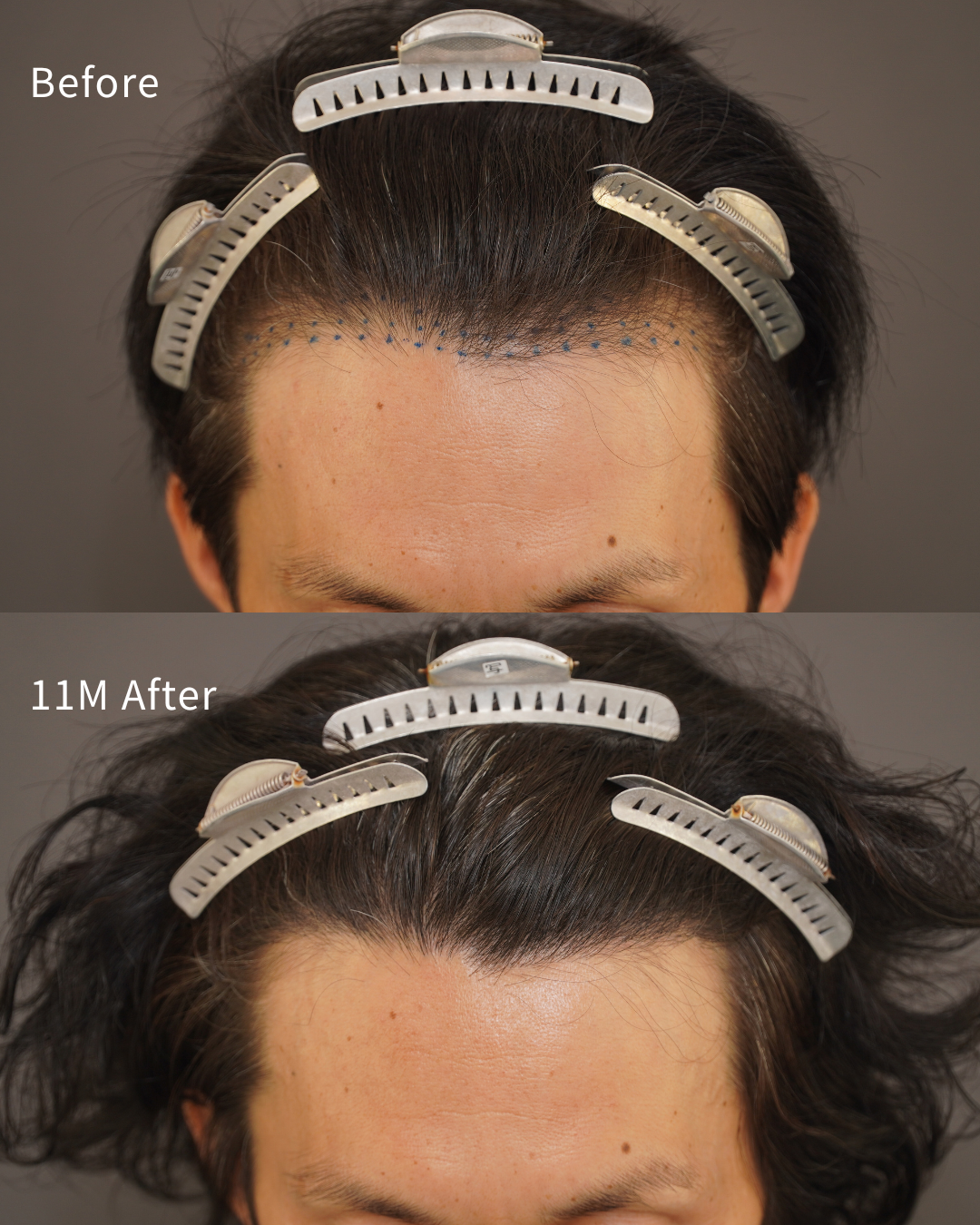 移植毛にはまだくせ感が見られますが、今後時間の経過とともに少しずつ落ち着いてくると考えられます。